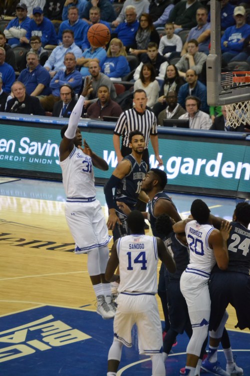 The Pirates came out hot to start the second half. With 17:06 to go in the second half, an Angel Delgado layup would give the Pirates a 27 point lead. This would be their largest lead of the game. The two teams then played pretty much evenly throughout the rest of the contest. One of the highlights was a three point basket by Ismael Sanogo that brought the crowd to its feet. Desi Rodriguez gave the fans a scare when he took a hard fall but he returned to action later in the half. In the end, the Pirates would down St. John’s 86-73.