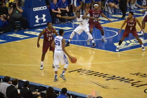 The Pirates came out hot to start the game. Seton Hall jumped out to an early 11-2 lead on the strength of a Khadeen Carrington three pointer and the play making ability of Isaiah Whitehead. However, Troy would respond with a run of their own. With the Pirates offense slowing to a crawl, the Trojans built a lead that grew to as much as 8 points with 7:13 to go in the 1st half. From there the Pirates started to reassert themselves. By the end of the first half, the Pirates would hold a 36-30 lead.